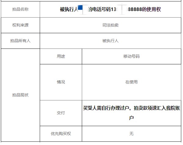 在很多人看来,一个手机靓号能够卖出不少钱,近日,在我国重庆市,渝北区人民法院就公开对被执行人的电话号码使用权进行拍卖,这个电话号码的尾数带着6个8,最终经过长时间的拍卖,这个尾数带6个8的手机号被拍出了非常高的价格,成交价为85万元。