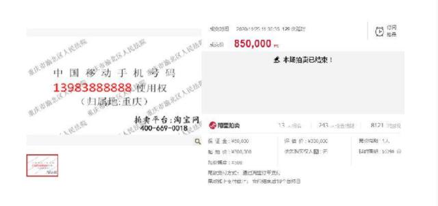 重庆8888888手机号码,法拍出85万元!历史最高拍卖号码竟达341万
