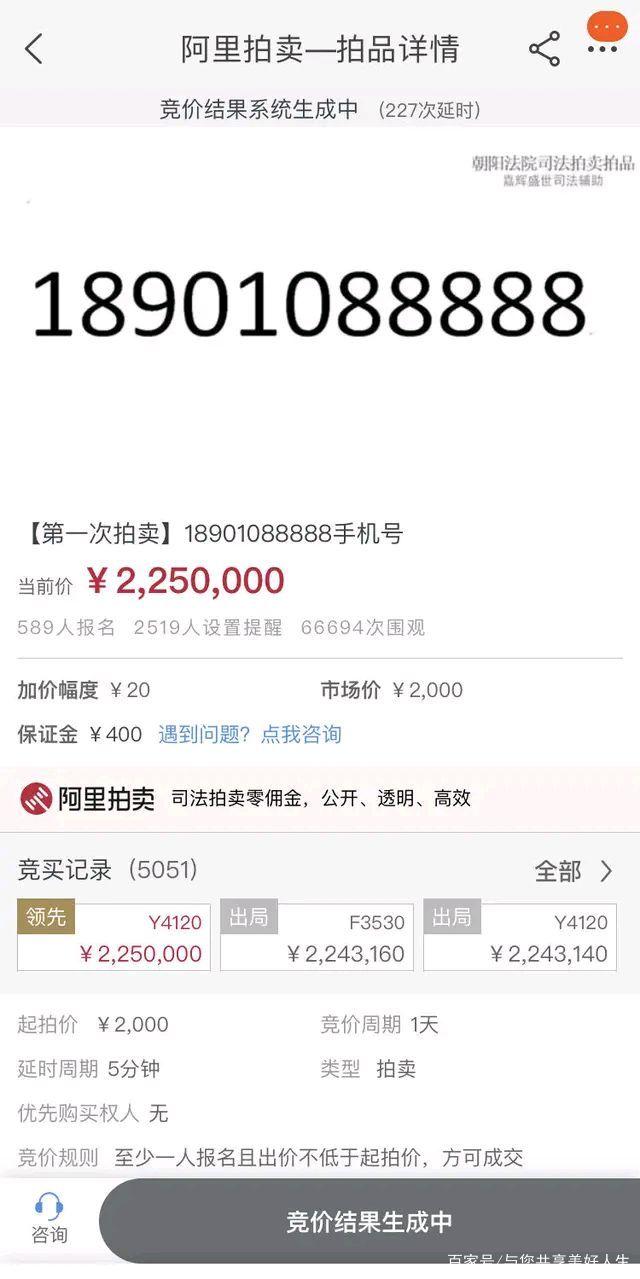 不过,这个手机号码拍出了225万的天价,其实还不是最高的,曾经一个8个7的手机号码拍出了391万的天价,这是让大多数人想都不敢想的事情。