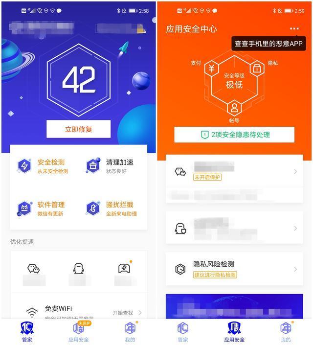 打开软件,进入下方“应用安全”,找到“隐私风险检测”。