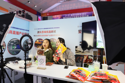 博拉5G视频&直播电商产业园展位位于现场展销活动的核心区域,透明亚克力板材搭建的专业器材直播间格外吸睛。独立隔音式的主直播间进行综合扶贫名特产的直播,例如有地标特色的江津米花糖、青花椒,奉节腊猪蹄、脐橙,兴文乌骨鸡,长宁竹荪等均有上架。据现场负责人介绍,邀请三农主播现场直播、展示扶贫名优特产、搭建专业直播间,正是产业园计划在三农领域“电商扶贫,助农兴村”的“人货场”模式体现,“我们想聚农品,选优品,育主播,让更多的重庆扶贫产品、全国优质生态特产,直接从原产地以更优廉的价格,走出去,送达全国家庭餐桌”。
