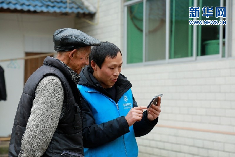 中国移动四川公司工作人员帮助老年人使用手机。